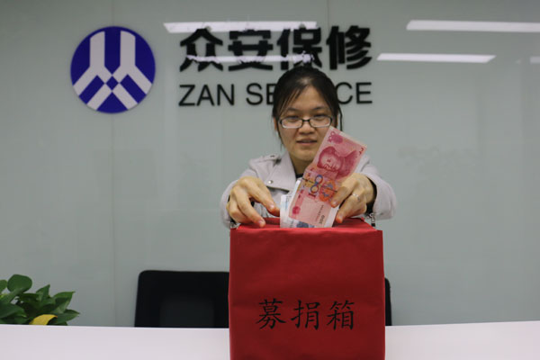 大家你100、我200的……大家纷纷献出了自己的一份爱心。最后大家以众安保修的名义集体向刘师傅的母亲捐赠现金10000元整。