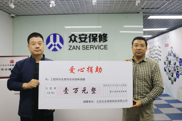 “刘师傅是非常优秀的业务员,今后我们的延保业务员,每销售一单延保,就为“公益援助”增加一份力量;传递爱,分享爱——让我们一起为爱行动。”众安保修董事长张刚如是说。