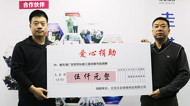 “2017年12月29日广西宾阳如意唐工程师因其母亲重病,且符合“2017年一心援助金“援助条件,经众安保修“一心援助金”小组审核决定:向唐工程师援助5000元。”这也是2017年“一心援助金”援助的第二个项目。(“一心援助金”第一个援助项目:向长沙刘师傅援助10000元,募捐4580元,合计14580元)