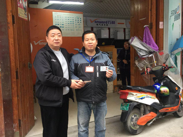 (右:唐师傅 领取援助金5000元)